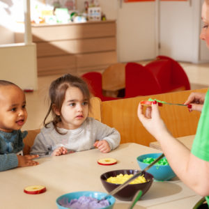 Een professioneel en betrokken team werkt nauw samen, heeft een coachende en stimulerende rol en zorgt daarmee voor een knusse, veilige, pedagogisch verantwoorde sfeer waardoor de kinderen, ouders en verzorgers een “zoals thuis” gevoel hebben.
