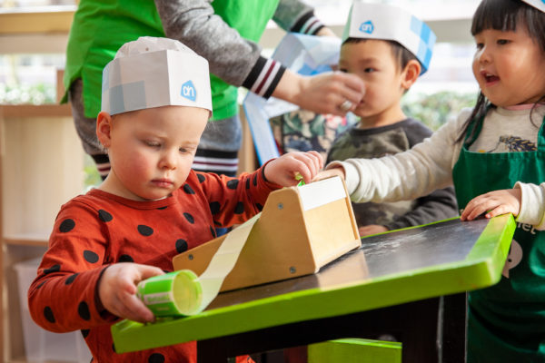 De groepen zijn speels ingericht en bieden variatie aan het kind om zijn omgeving naar eigen behoefte en wens te gebruiken. Er wordt gewerkt met hoeken en thema’s zoals bouwen, puzzelen, verkleden, tekenen, muziek maken, lezen.